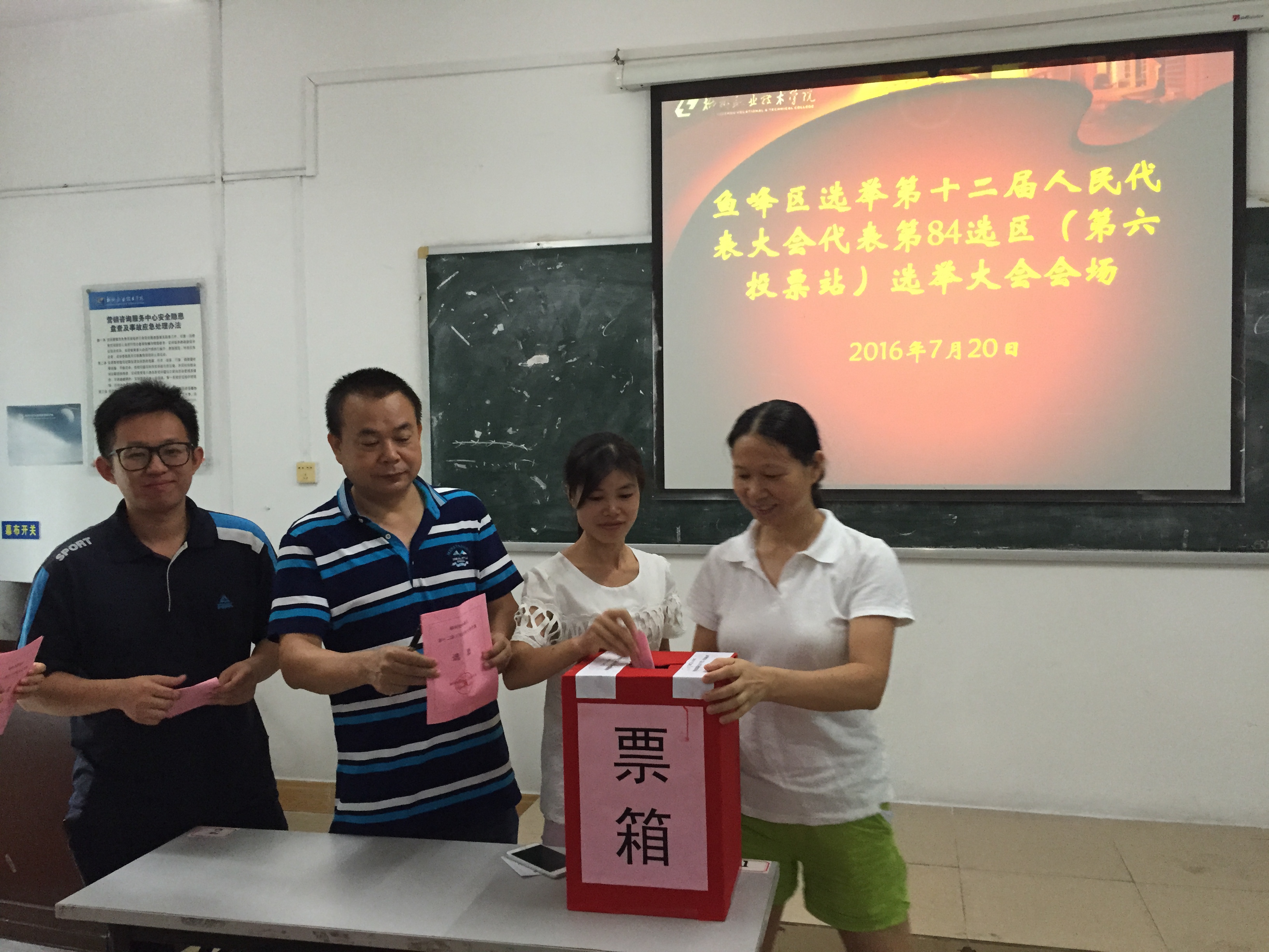 根据鱼峰区人大换届选举工作的统一部署,7月20日选举日当天,我校作为鱼峰区第84选区,有条不紊地圆满完成了鱼峰区第十二届人大代表84选区投票站的选举投票工作。
