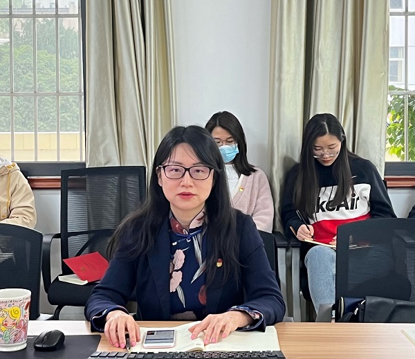 校党委直属六党支部(马克思主义学院党支部)书记左妮红汇报创建工作