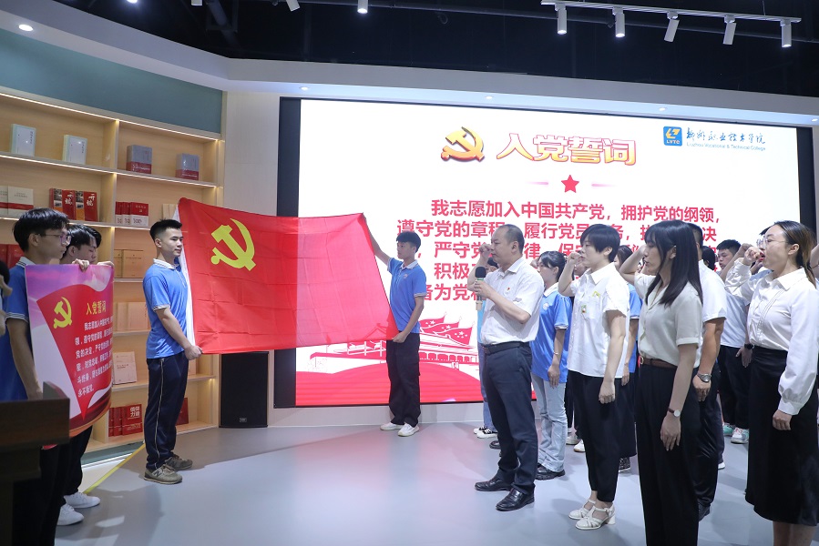 校长甘金明在活动现场负责领誓,带领新发展的30名师生党员代表在党旗下庄严宣誓,在党旗下对党和人民作出庄严承诺,用嘹亮坚定的声音充分展现新时代新党员的青春风貌。