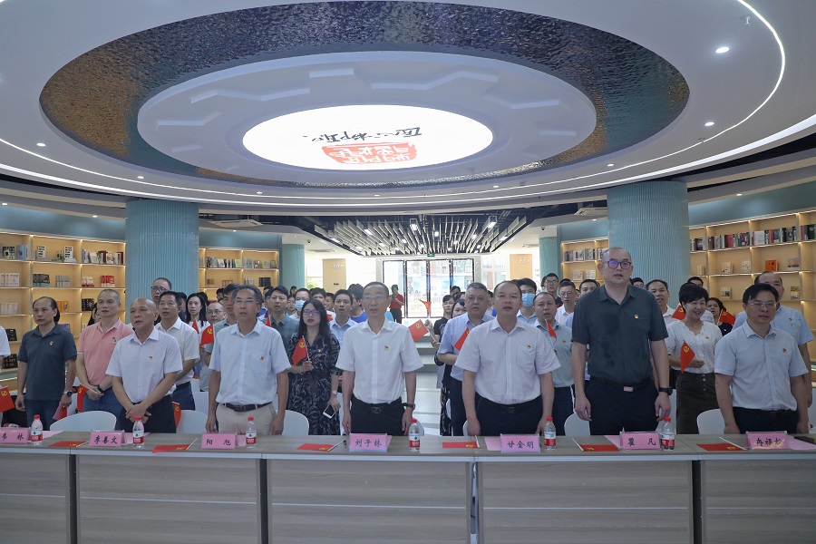 新闻网消息(文/党委组织部 骆琴 图/党委宣传部 )2022年7月1日上午,学校在官塘校区匠心书院举行庆祝“七一”主题活动。校党委班子成员、党政部门负责同志、各基层党组织书记、党建组织员、教师党员代表、新党员代表共计80余人参加活动。校党委副书记阳旭、党委宣传部副部长刘明皞共同主持活动。