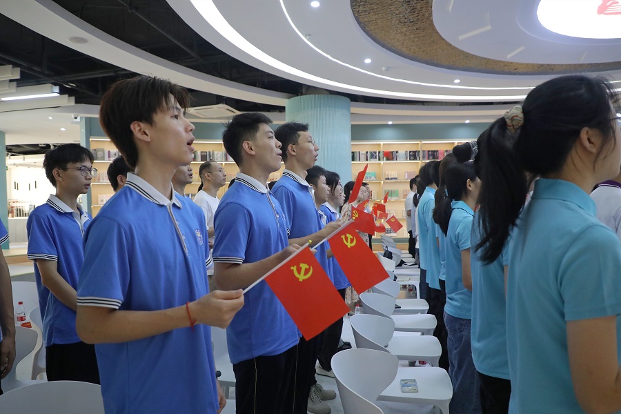 活动分为红色歌曲联唱、观看习近平总书记考察广西视频、打卡红色教育基地、学习《中国共产党普通高等学校基层组织工作条例》知识抢答、新党员宣誓、党员代表发言、党委书记讲话等环节。