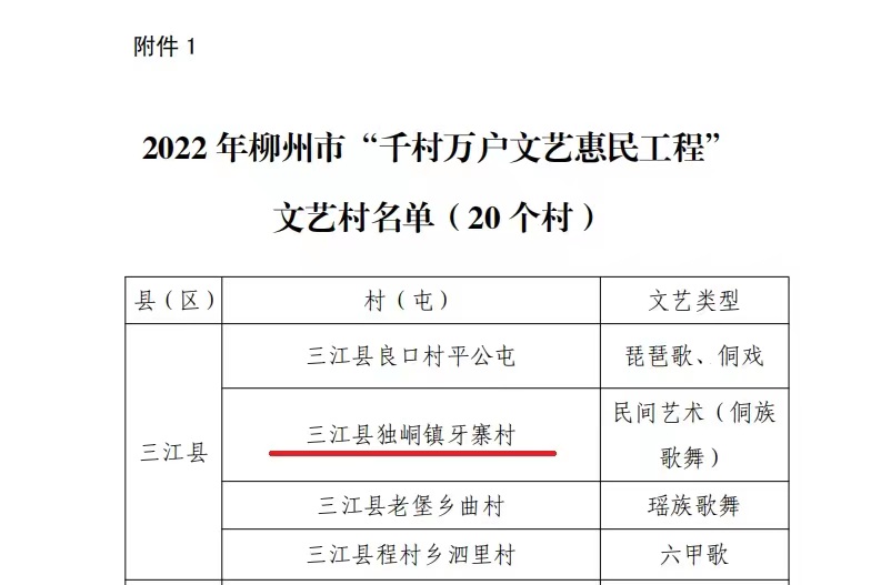 喜讯:我校对口帮扶村——三江县独峒镇牙寨村获评为2022年柳州市“千村万户文艺惠民工程”文艺村